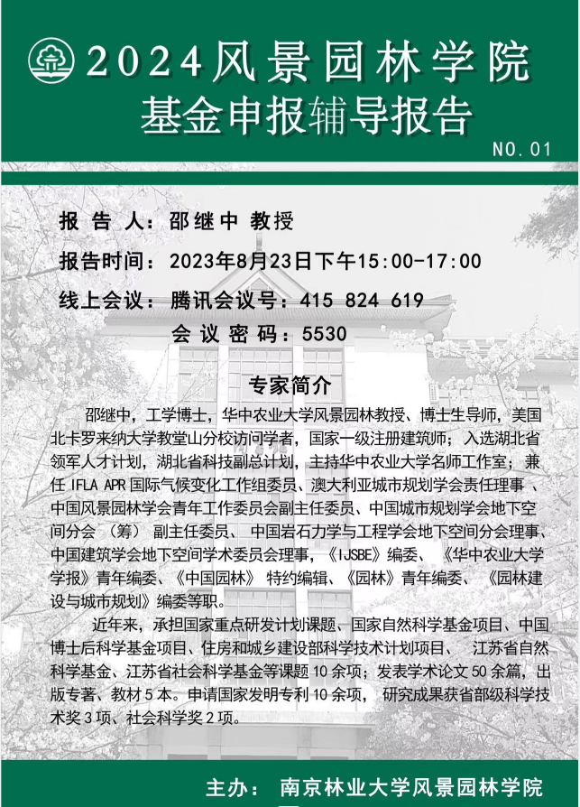 应我院邀请,华中农业大学邵继中教授于2023年8月23日下午为我院教职工开展了国家自然科学基金的申报辅导工作。