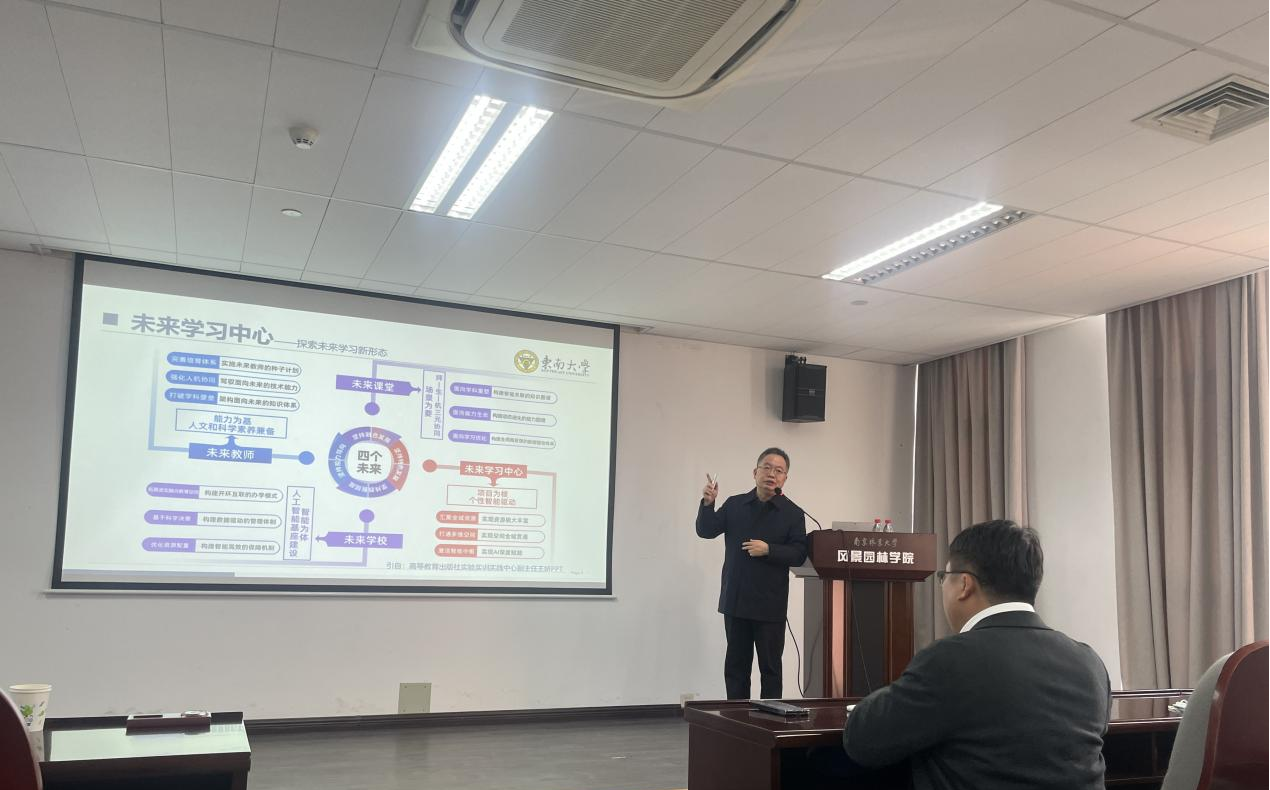 2025年12月29日下午,由风景园林学院承办的南京林业大学“水杉”名师大讲堂第三十四期在教9楼9A303顺利举行。本期大讲堂以“自主实验牵引的未来学习中心建设”为主题,特邀东南大学熊宏齐教授主讲。讲座由风景园林学院副院长曹加杰主持,风景园林学院教师及其他学院教师代表参加。
