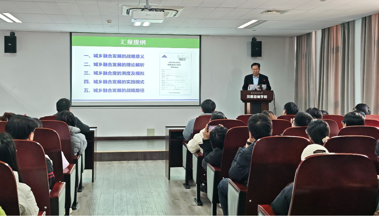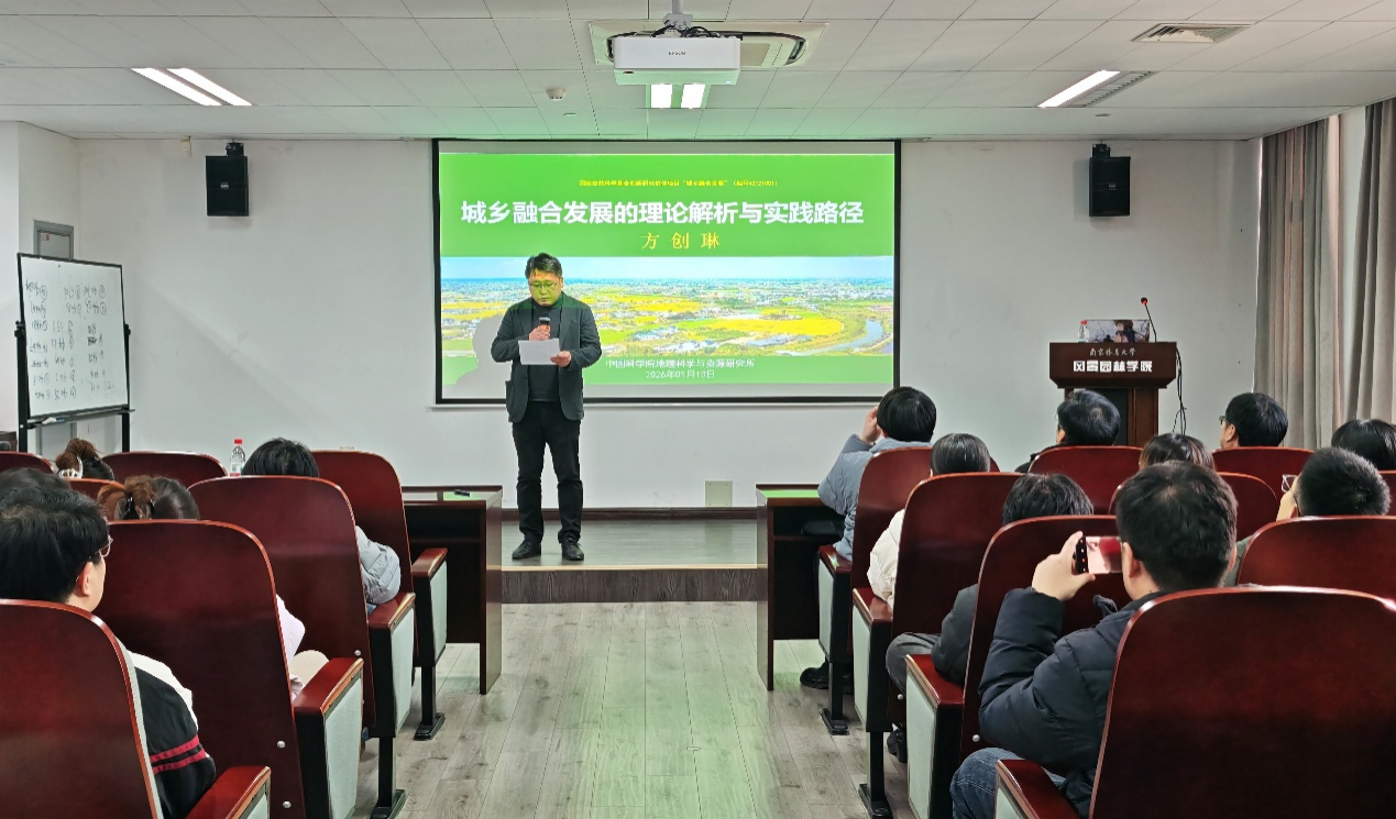2026年1月13日,国际欧亚科学院院士、中国科学院地理科学与资源研究所方创琳研究员/博导应邀莅临我院,于学院报告厅作题为《城乡融合发展的理论解析与实践路径》的学术讲座。风景园林学院院长邱冰、城乡规划系主任申世广出席活动,学院教师与研究生踊跃参与。讲座由邱冰院长主持。