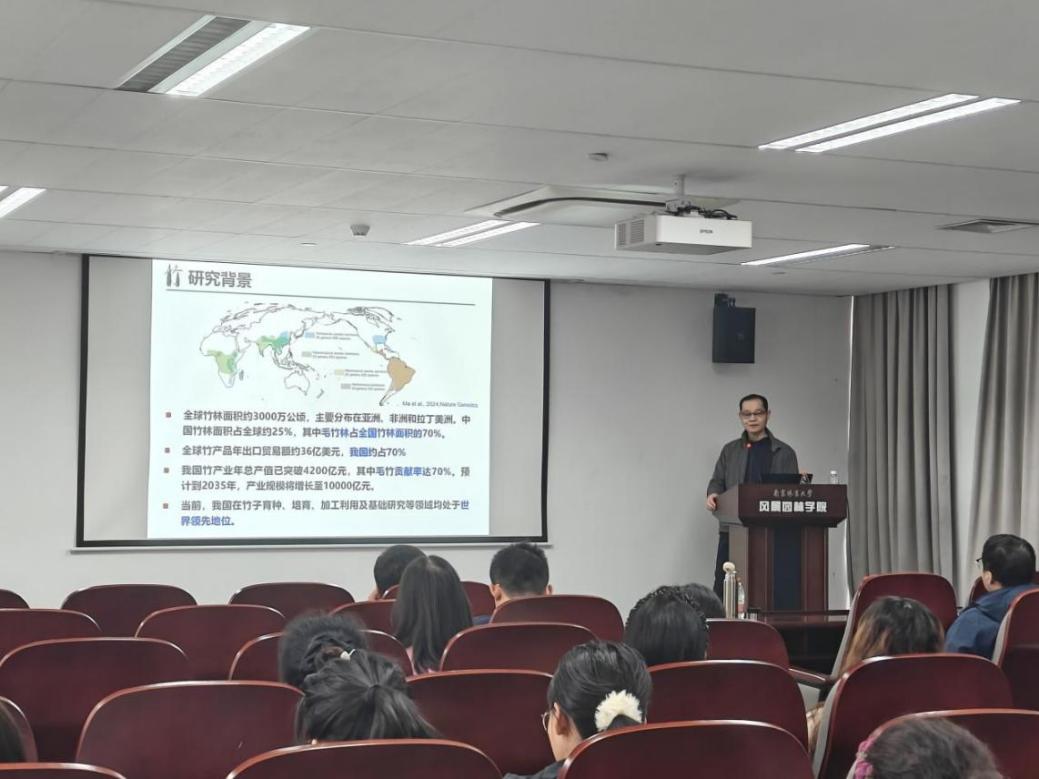 南京林业大学教授、博士生导师魏强教授将目光投向微观生命机理,以“竹子快速生长机制解析”为题进行分享。面对迈向万亿产值的竹产业,基础研究需从宏观背景深化至微观机理,他构建了“确立结构蓝图、演绎生长协奏、启动调控引擎、筑牢支撑支架”的四大速生机制框架。他通过解析地下竹笋预构建、赤霉素基因调控及母本营养转运等具体路径,揭示了毛竹速生系结构、调控与支撑系统“1+1>2”的协同优化结果。最后,他强调该成果将为竹产业新质生产力发展提供关键理论支撑。