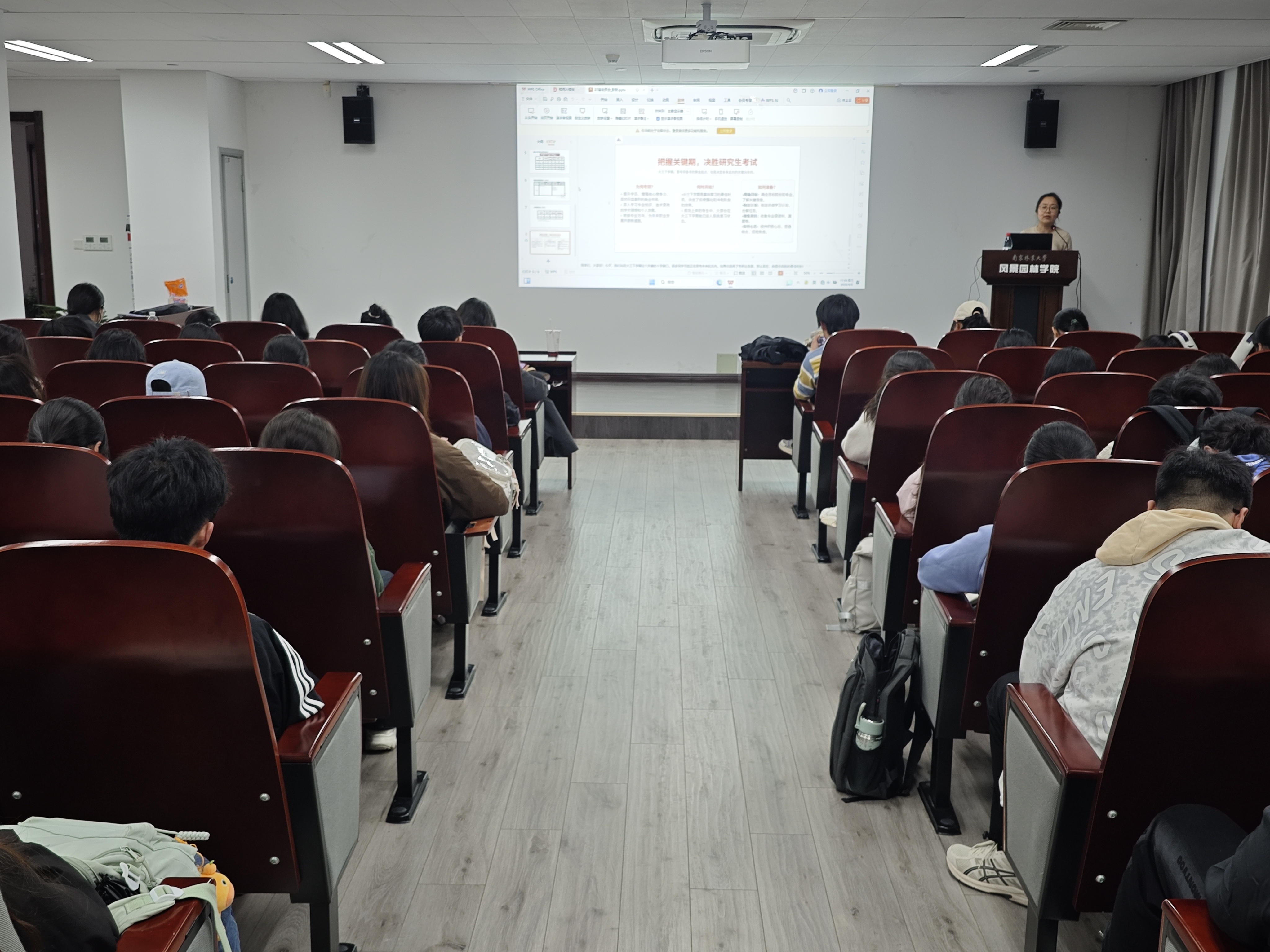 相关老师有针对性地从报考院校选择、专业选择、报考类别等方面做了详细指导,希望同学们结合自身实际进行合理评估,选择适合自己的考研目标院校。并结合学院优秀考研学子的典型案例,分享了备考经验和成功心得,激励同学们树立远大目标,坚定考研信心,以积极的心态和科学的方法迎接考研挑战。同学们纷纷表示,将以此次动员会为契机,制定科学的备考计划,全力以赴备战考研,争取在2027年研究生考试中取得优异成绩。