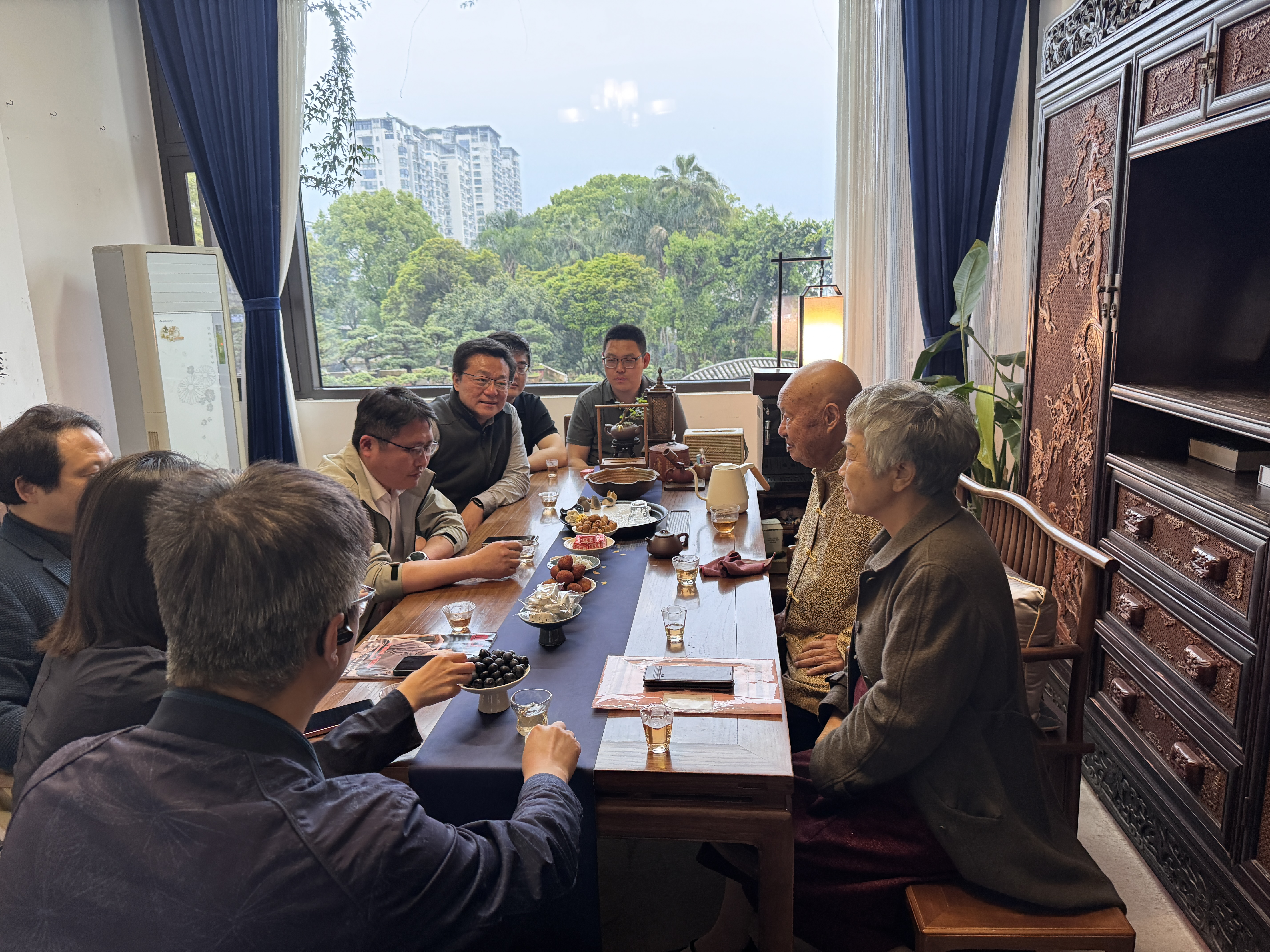 为深入推进 "访企拓岗促就业" 专项行动,深化校企合作、联络校友情谊,2026年4月18日,我院院长邱冰、副院长曹加杰、人文社科处副处长(挂职)圣倩倩、办公室主任张跃、辅导员崔腾飞一行赴浙江红欣园林艺术有限公司走访调研,同行的还有艺术设计学院院长祝遵凌、金埔园林股份有限公司设计院院长张永辉。中国盆景艺术大师、我院2002年聘任兼职教授林鸿鑫先生,我院优秀校友林峤(林鸿鑫先生女儿)等企业负责人热情接待了走访团一行。双方围绕行业发展、人才培养、校企合作及校友工作等议题展开深入交流,共话耕耘初心,共谋传承发展。