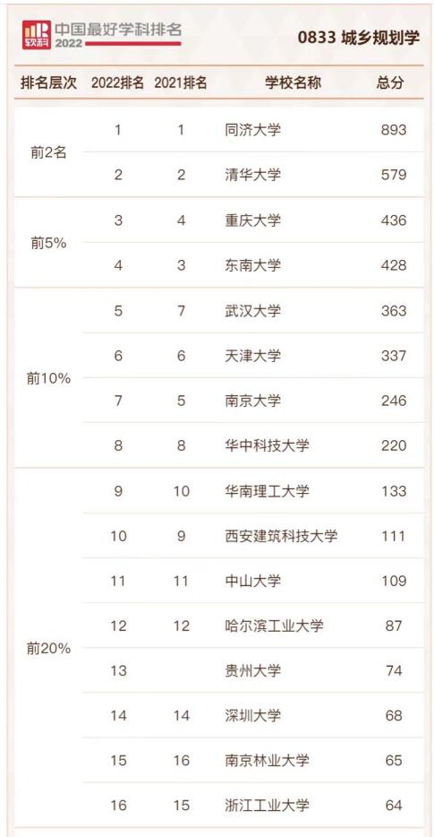 2022年9月21日,高等教育评价专业机构软科正式发布了“2022软科中国最好学科排名”,我院“风景园林学”“城乡规划学”再次上榜 “2022软科中国最好学科”。