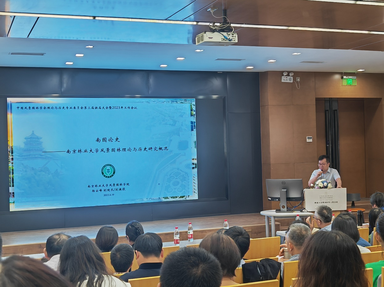 来自清华大学、北京林业大学、同济大学、南京林业大学、华南理工大学、东北林业大学、东南大学、天津大学、福建农林大学、西安建筑科技大学、浙江农林大学、重庆大学、华中农业大学、华中科技大学等十四所高校的专家学者依次分享了近年来各校在风景园林理论与历史研究方向的业务进展,并围绕专委会未来发展方向等主题进行了研讨。杨云峰副院长以“南园论史——南京林业大学风景园林理论与历史研究概况”为题向与会代表报告了南京林业大学风景园林学院概况,并从陈植、徐大陆、陈吾等专家的学术源流和当代专业团队的成员构建情况,梳理了我院专业人才队伍的发展脉络;进而围绕图像学视角下的中国古典园林史研究、江南园林历史研究、遗产保护与活化,以及中外古典园林史教学等方面,介绍了我院的主要学术研究方向与专业特色。